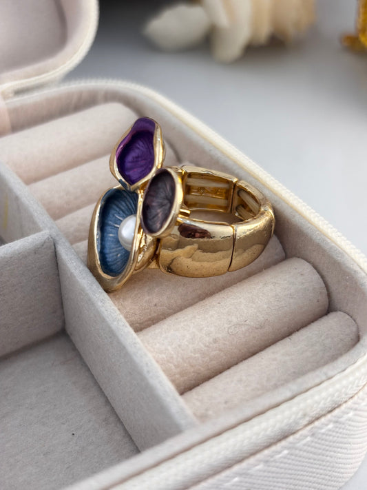 Layered Enamel Pearl Statement Ring | Adjustable Golden Base