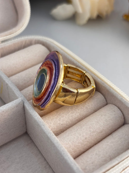Abstract Enamel Round Gold Statement Ring