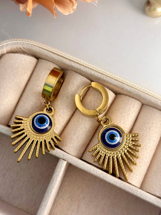 Evil Eye Drama Huggie Hoops | Anti Tarnish Gold Plated