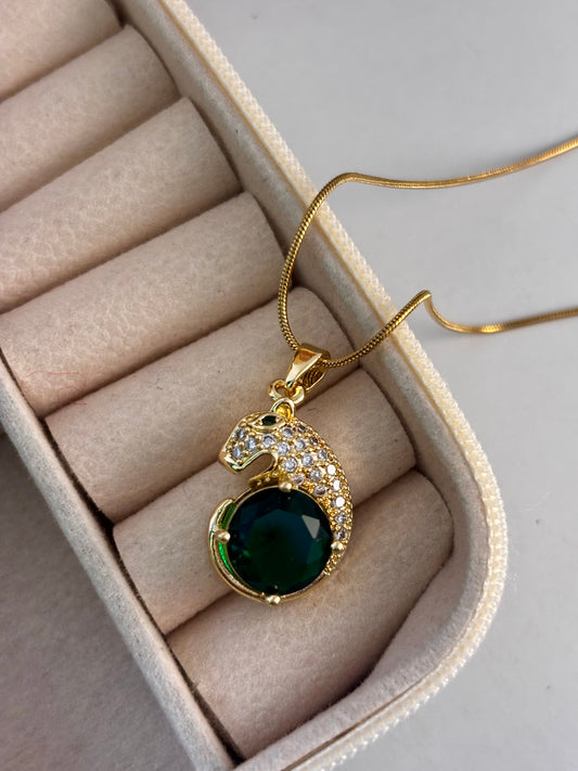 Emerald Zircon Panther Pinteresty Necklace | Gold Plated Non Tarnish