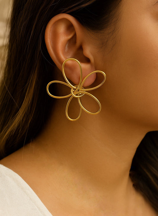 Anti-Tarnish Gold Textured Statement Stud Earrings