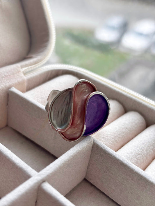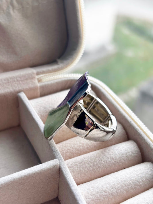 Sculptural Enamel Cocktail Statement Ring | Adjustable Silver Base