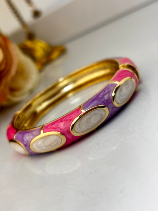 Pink Lavender Gold-Tone Statement Bangle Bracelet for women