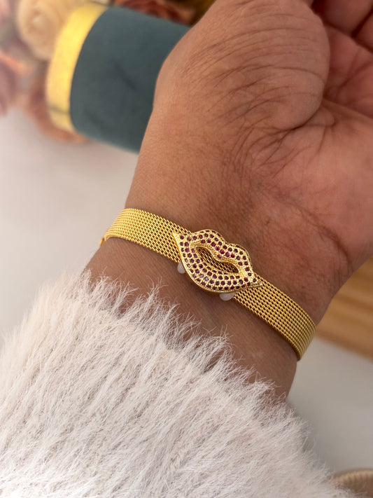 Ruby Kiss Lips Mesh Bracelet Watch | Anti-Tarnish Gold Plated Stainless Steel