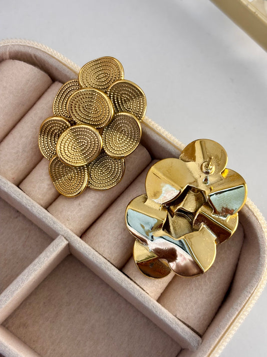 Anti-Tarnish Gold Textured Statement Stud Earrings