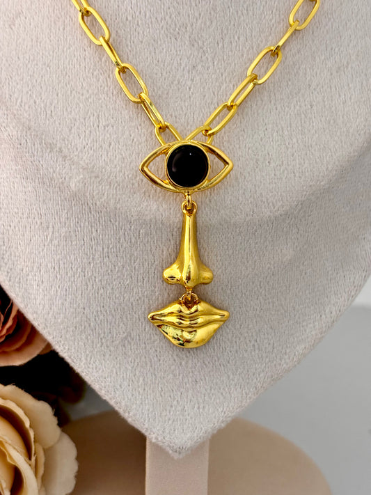 Nazar Block Pendant Necklace | Abstract Face Statement Piece