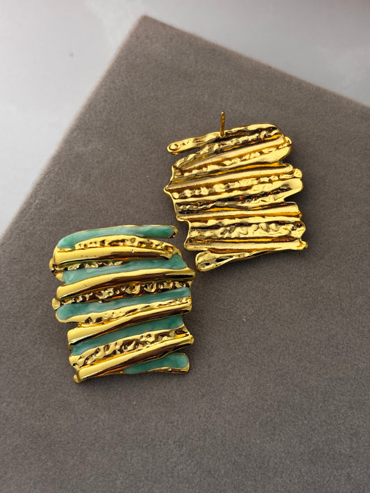 Sea Green Hammered Enamel Stud Earrings | Anti Tarnish Gold Plated