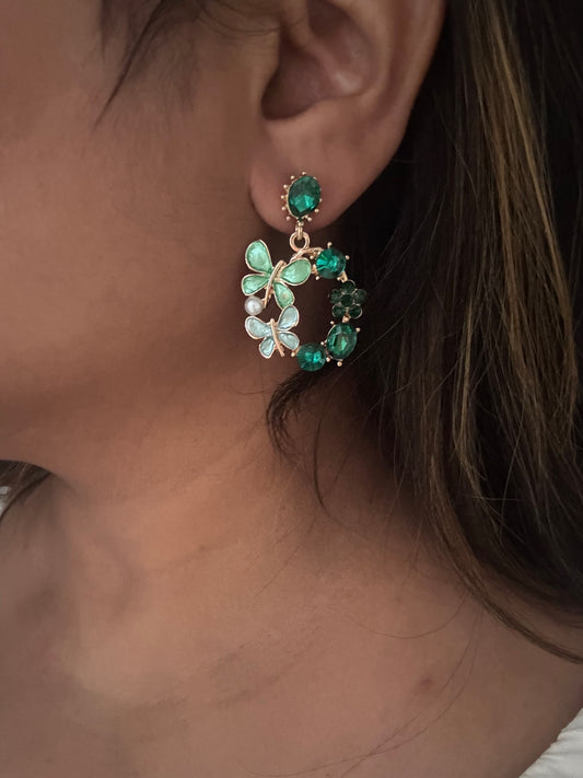 Emerald Flutterloop Crystal Drops - Gold Plated