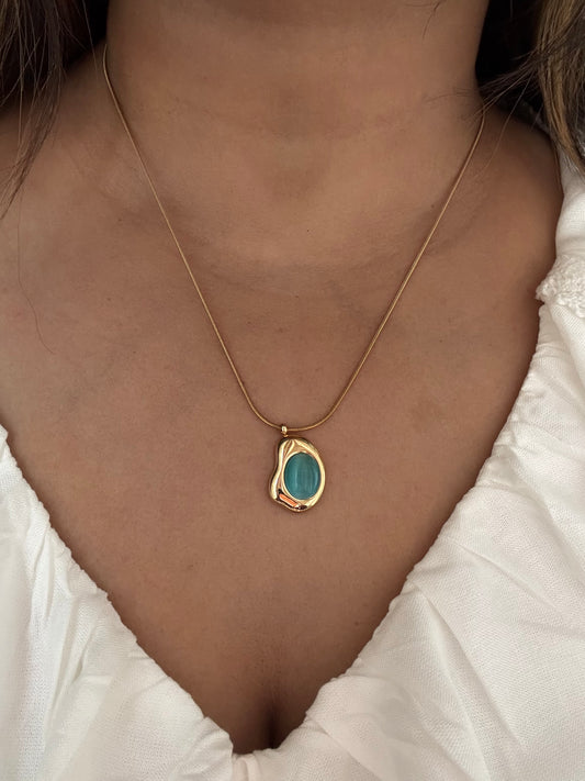 Blue Whisper – Aqua Stone Gold Pendant Necklace