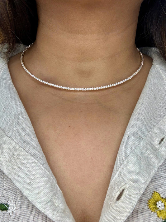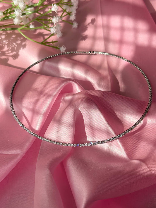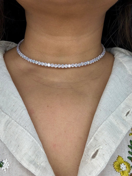 Sparkling Silver Tennis Choker with Cubic Zirconia