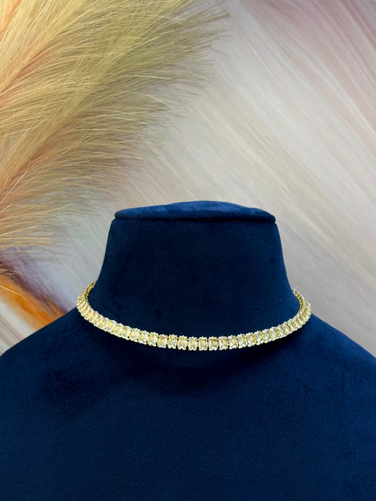 Golden Tennis Choker Necklace with Cubic Zirconia