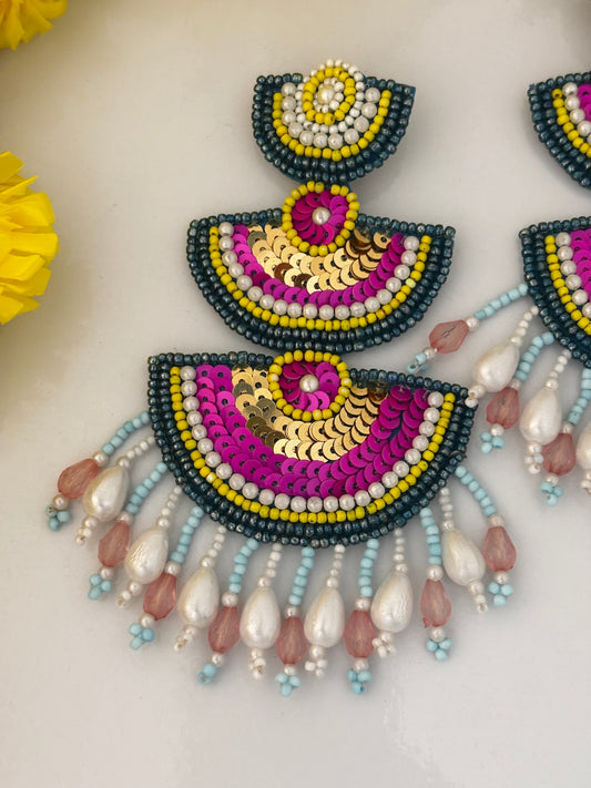 Sitara Beaded Handmade Statement Earrings ~ Wedding and Party Wear