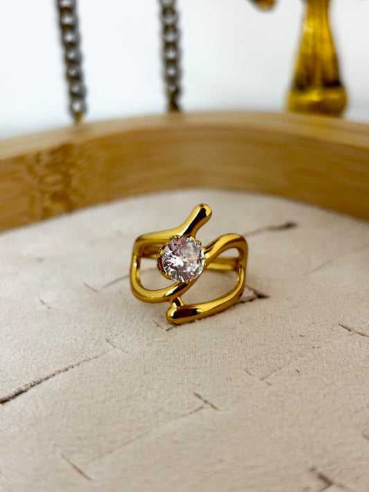 Abstract Gold Statement Ring with Zircon Stone