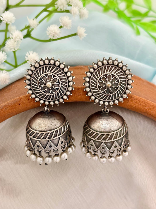 Inara Jhumkas | Rustic Silver Look Alike Earrings for Women