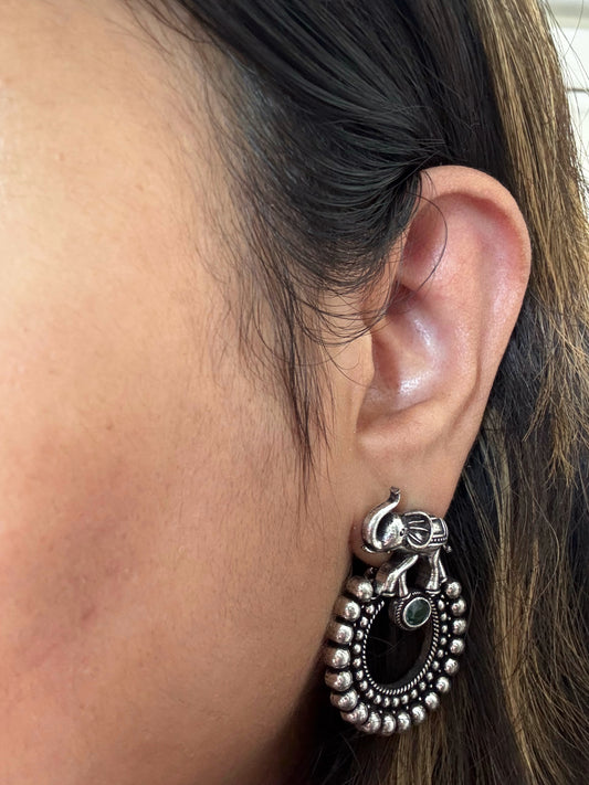 Zahra Jhumka | Boho Style | Silver Look Alike Earrings