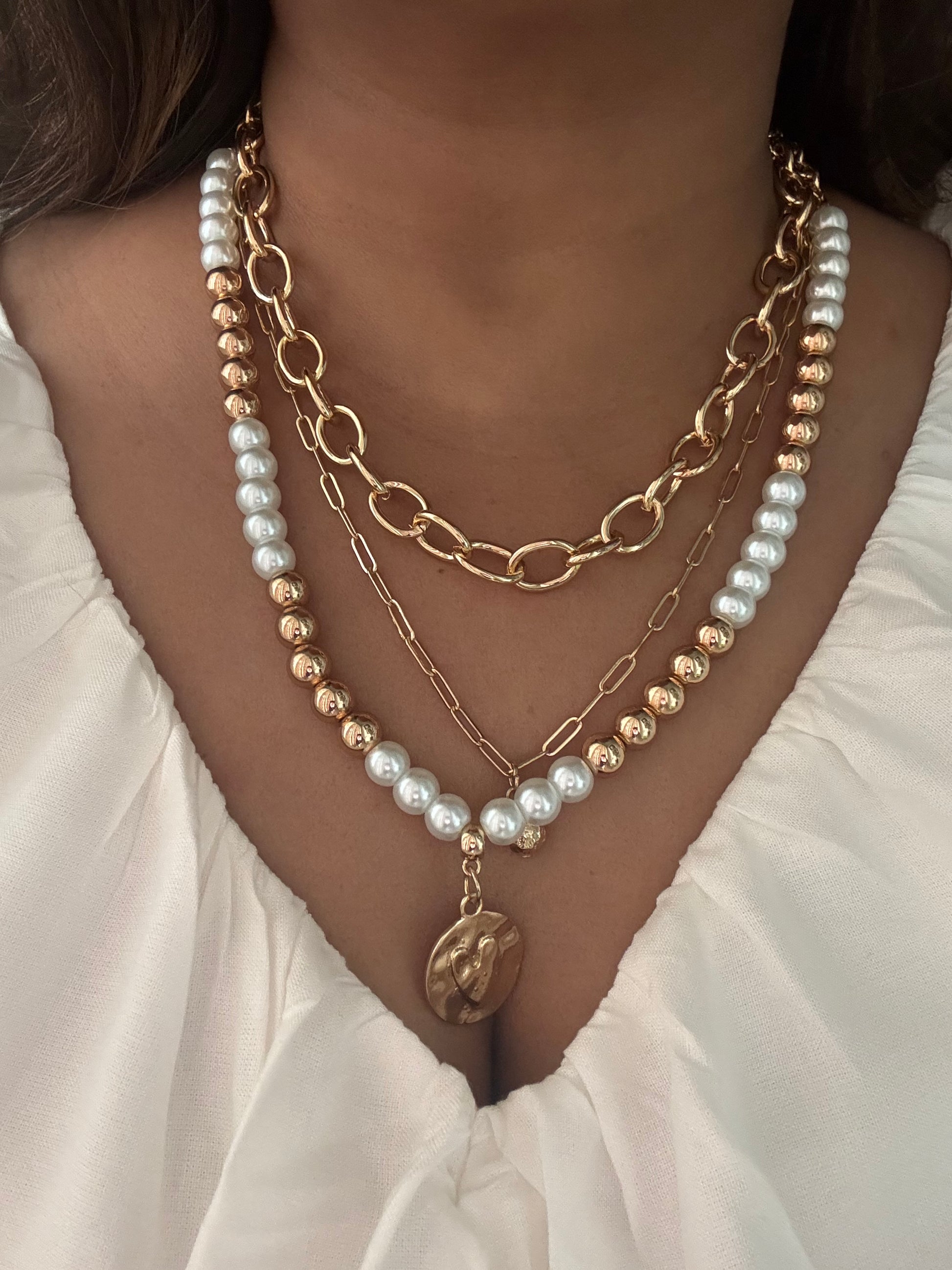 A fusion of gold, pearls, and modern chain links, this Layered Necklace is a timeless masterpiece.