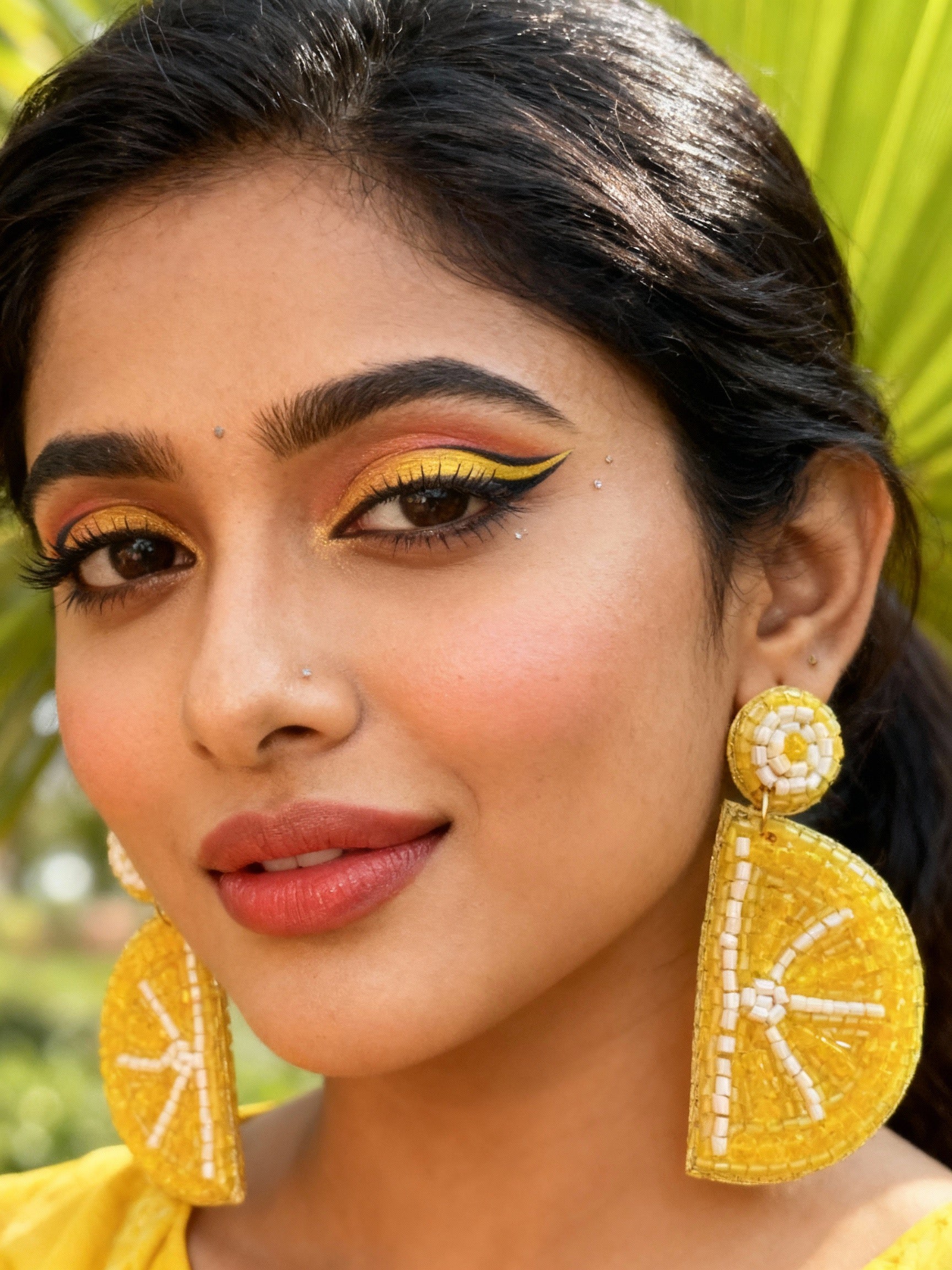 With detailed bead embroidery and a fun citrus slice design, these lightweight statement earrings are perfect for summer looks, vacations, brunch days, and trend-loving shoppers who adore handmade jewelry and quirky beaded earrings.