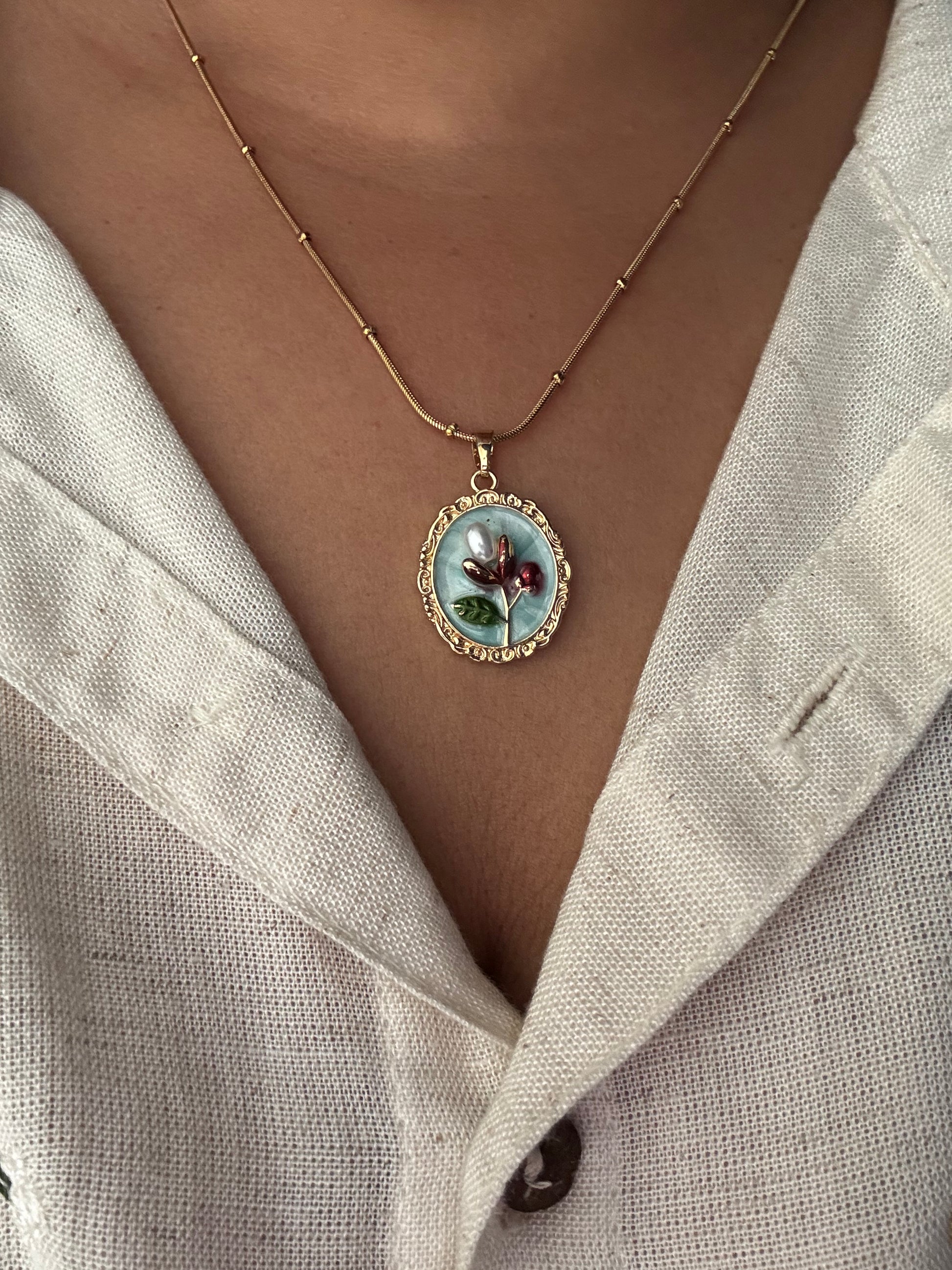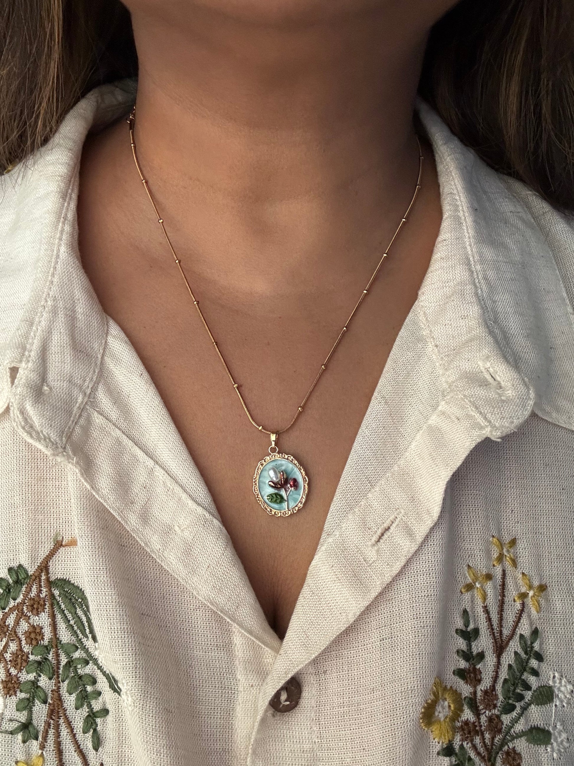 Dream Lace is a delicate vintage-style blue necklace crafted for modern romantics.