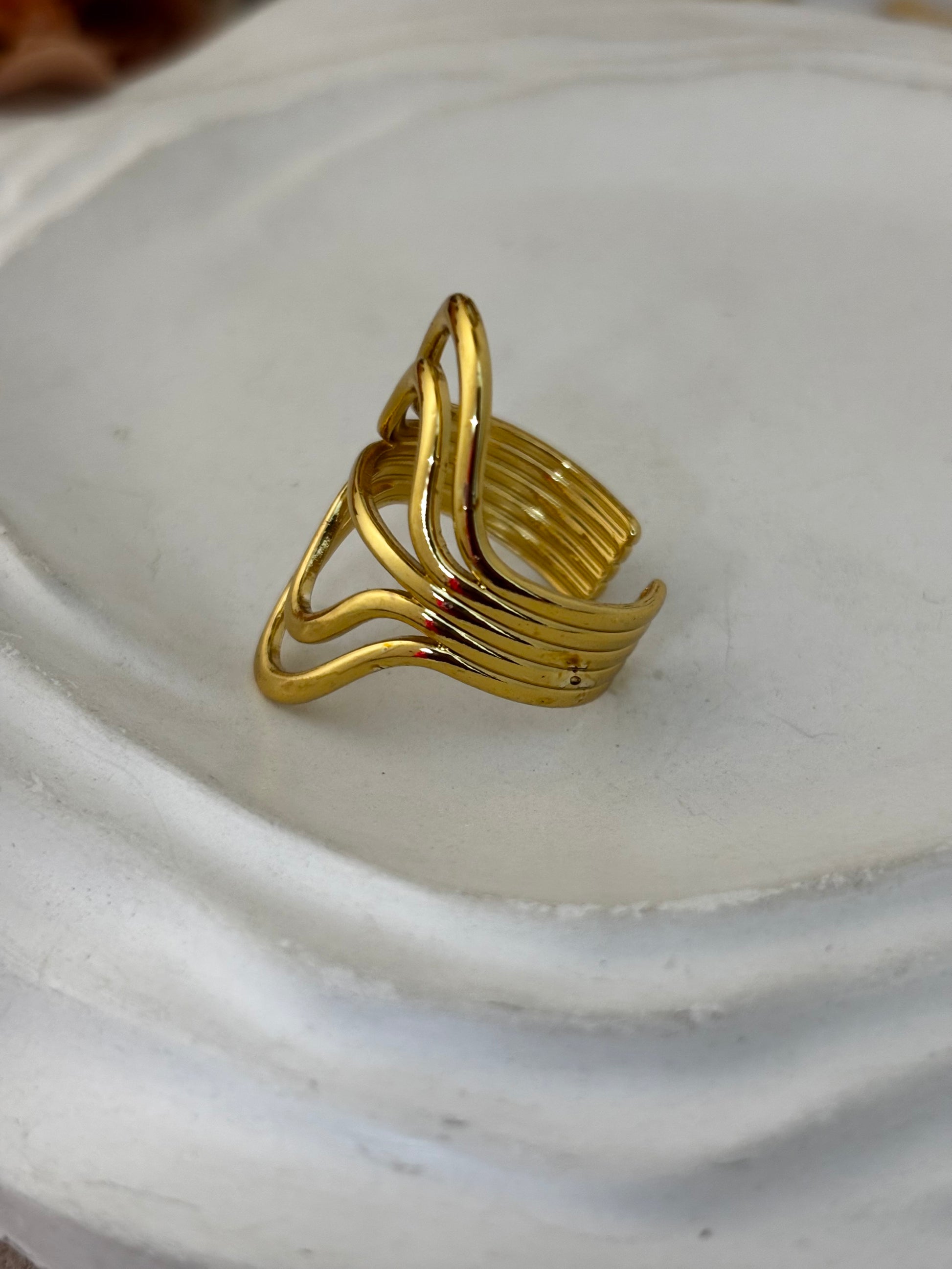 Modern Wave Anti-Tarnish Gold Plated Ring
