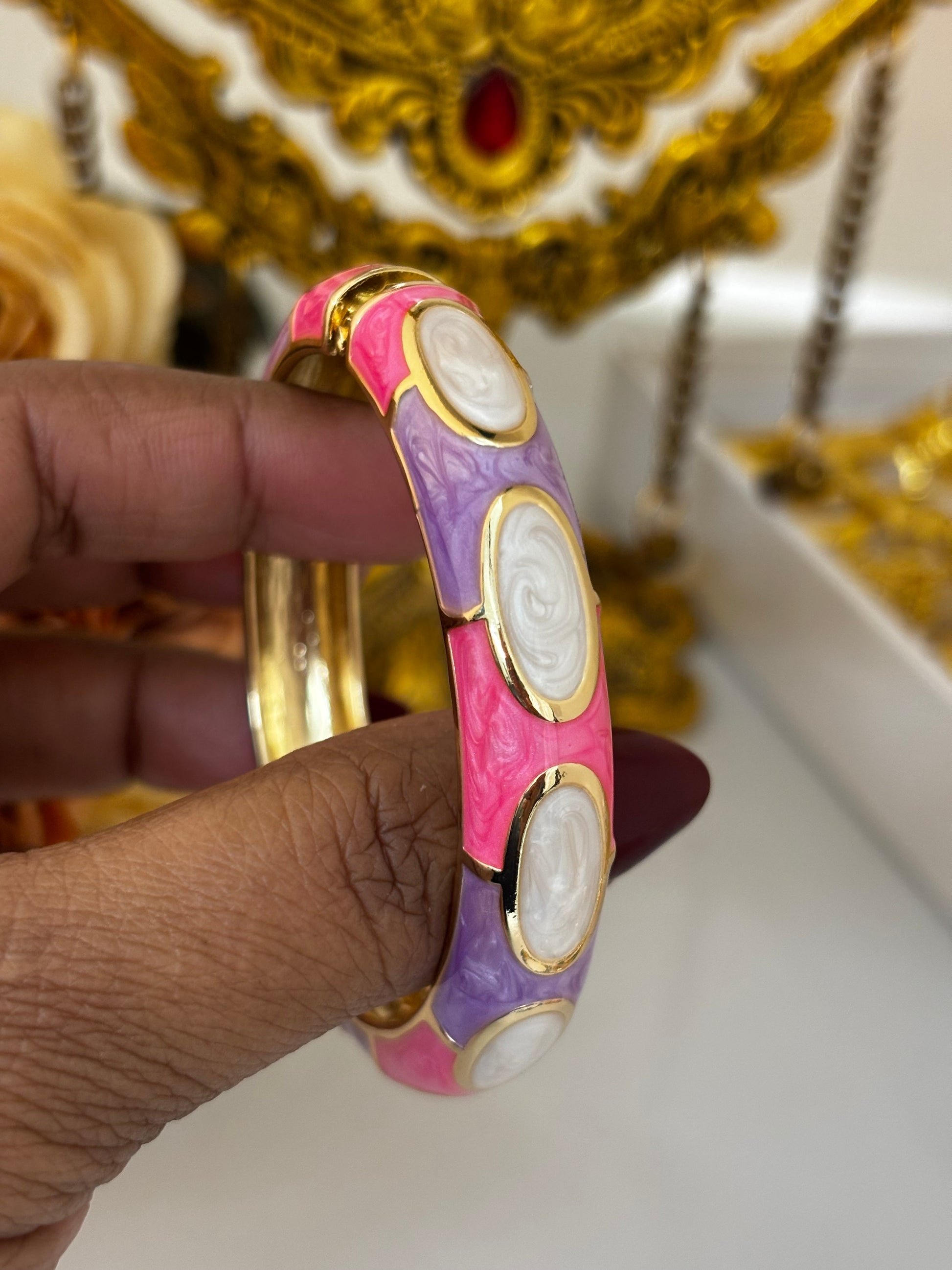 Pink Lavender Gold-Tone Statement Bangle Bracelet for women