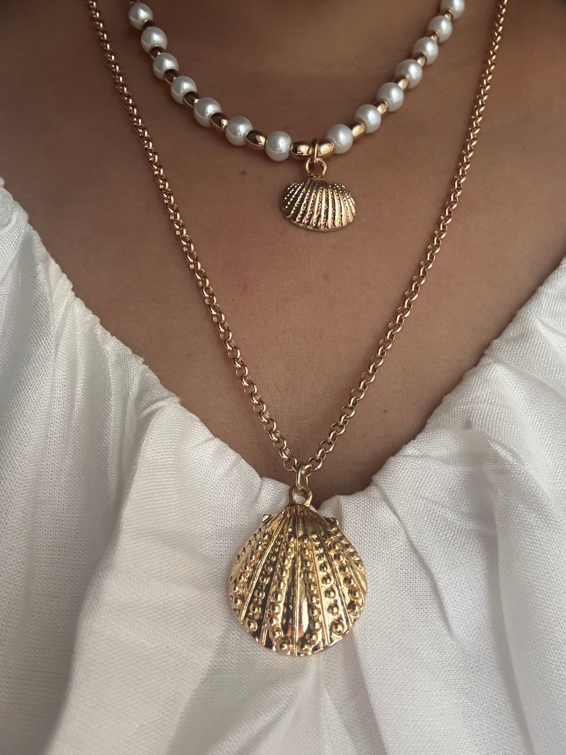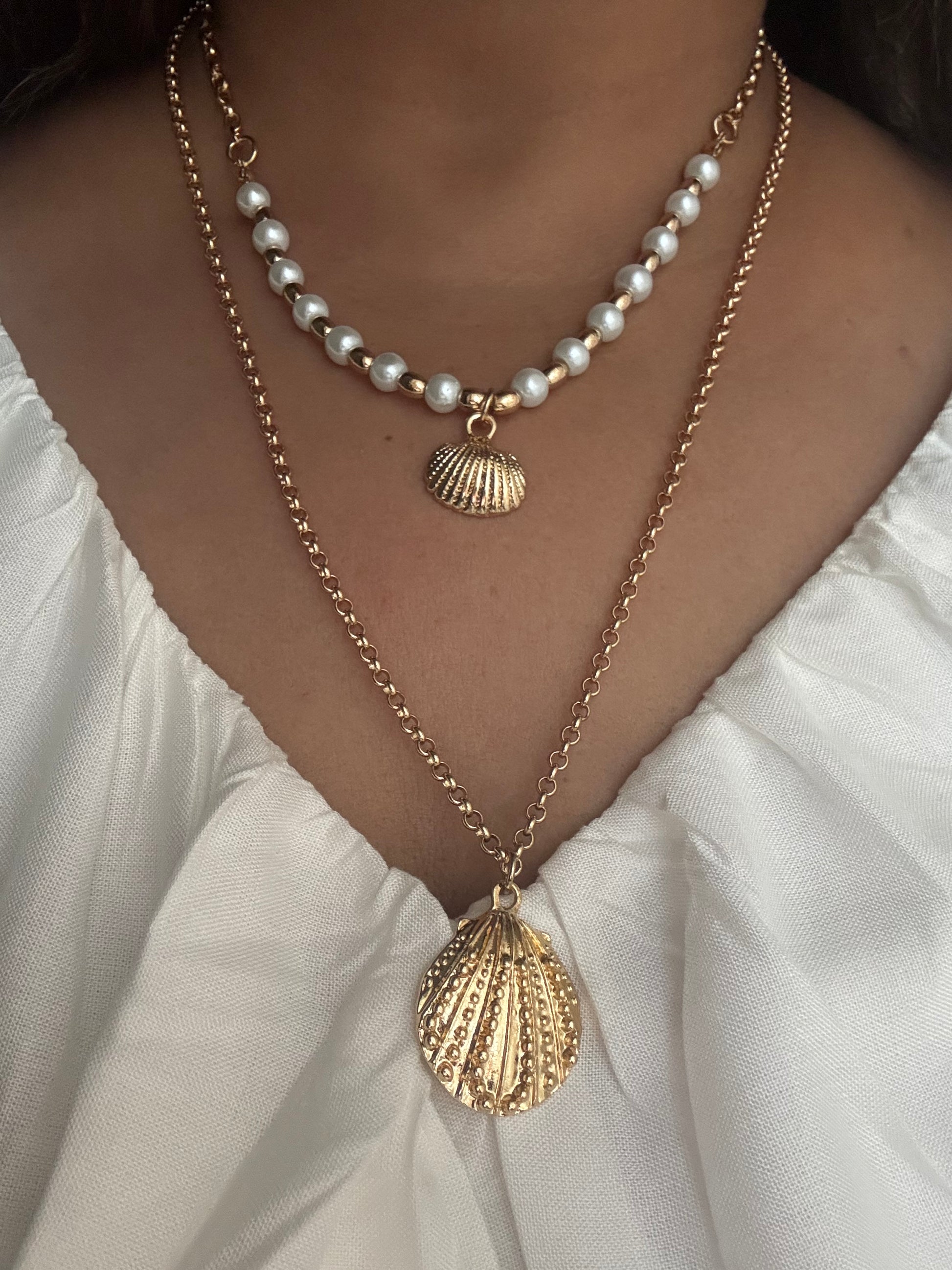 Seashell Pearl Layered Necklace