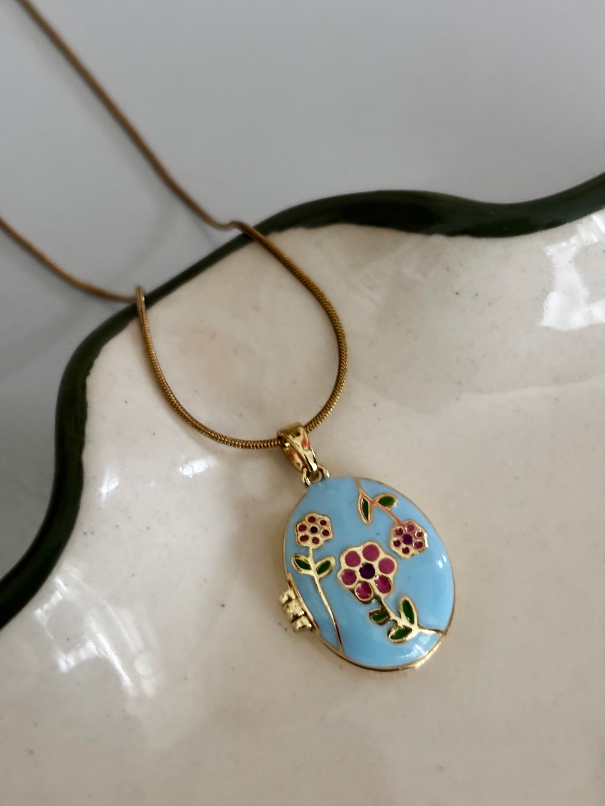 Vintage Photoframe Openable Gold Necklace (Blue)