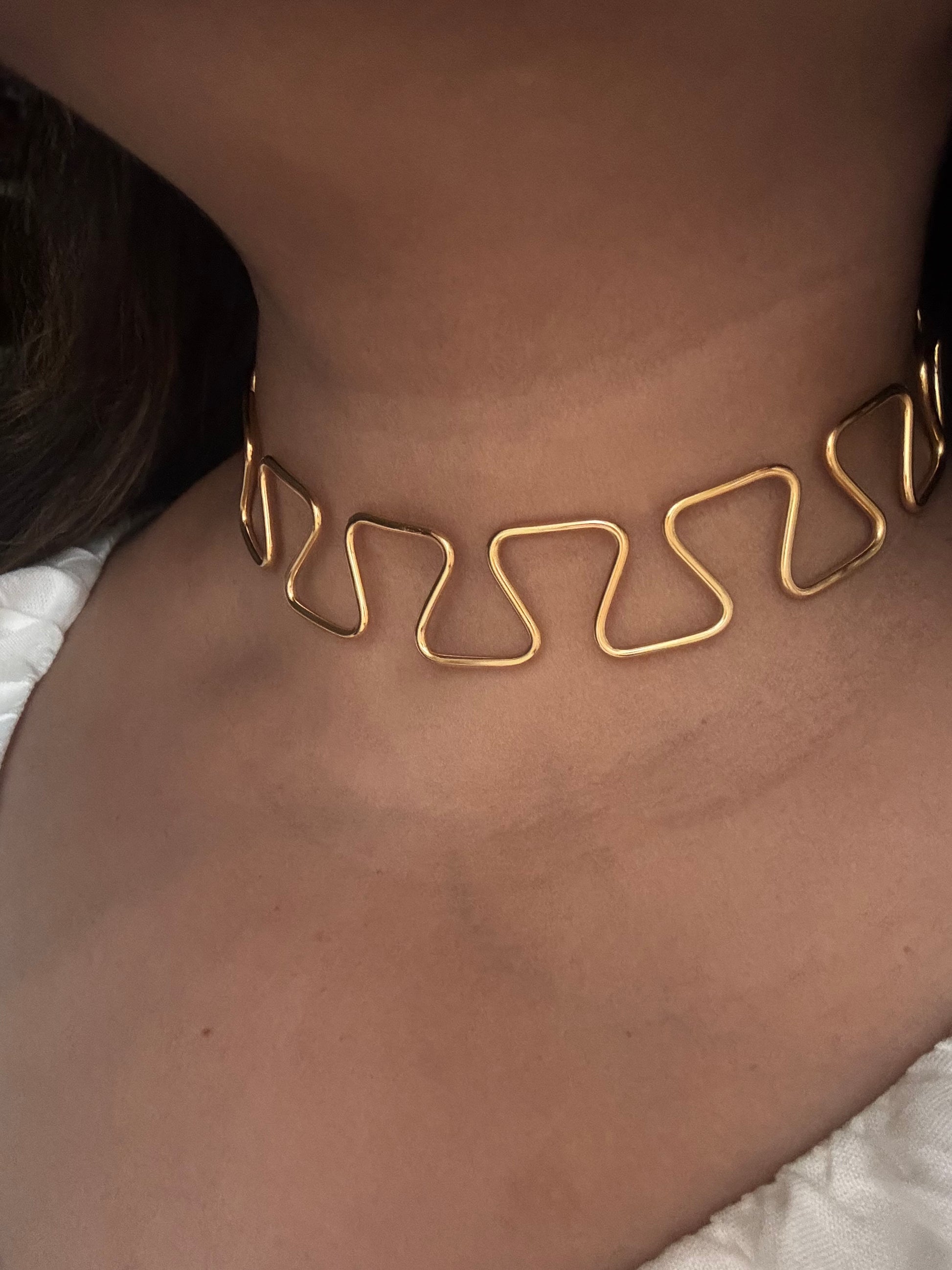 Whether worn as a statement choker or layered for a dynamic effect, this Hasli is perfect for those who love modern, artistic designs.