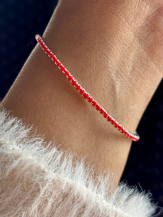 Minimal, Stackable Stretchable Tennis Bracelet (Red)