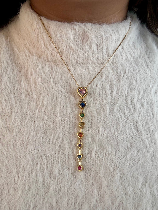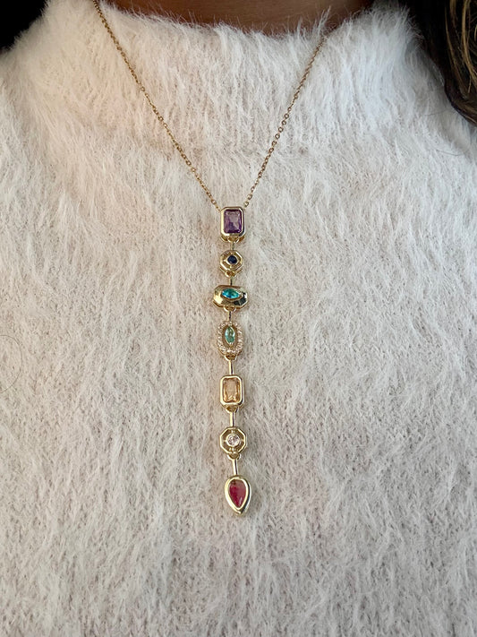 Viral Golden Multicolor Stone Vertical Drop Necklace