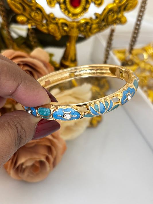 Blue Enamel Gold-Tone Statement Bangle Bracelet for women